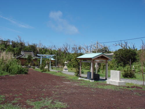 この神社へは大きな白い鳥居をくぐって向かいます。