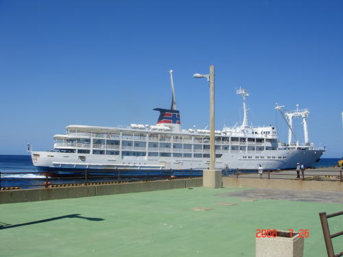 今回私たちを三宅島まで送り迎えをしてもらった大型客船≪かめりあ丸≫です。