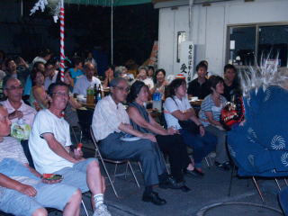 会場には近隣にお住まいの方々や、宵宮に来られなかった方々など、この演技披露のために来てくださった人でいっぱいでした。当初用意していた席だけでは足りず、テントの外にまで椅子を用意することになり、少しバタバタとしてしまい申し訳ありませんでした。