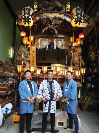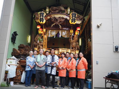 最後に山車の前で記念撮影を。